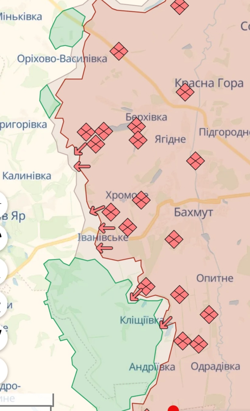 Офіцер пресслужби 26 артилерійської бригади імені Романа Дашкевича Олег Калашніков в ефірі телемарафону розповів, що російські війська продовжують наступальні дії у районі Кліщіївки, Богданівки та Іванівського.