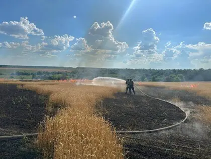 Ще раніше, о 16.00 у селі Карасівка Богодухівського району спалахнуло поле з пшеницею. Олег Синєгубов каже, що ворог цілеспрямовано намагався знищити врожай. Пожежу було локалізовано та ліквідовано на площі 2 га, попри ризики загорання на 110 га.