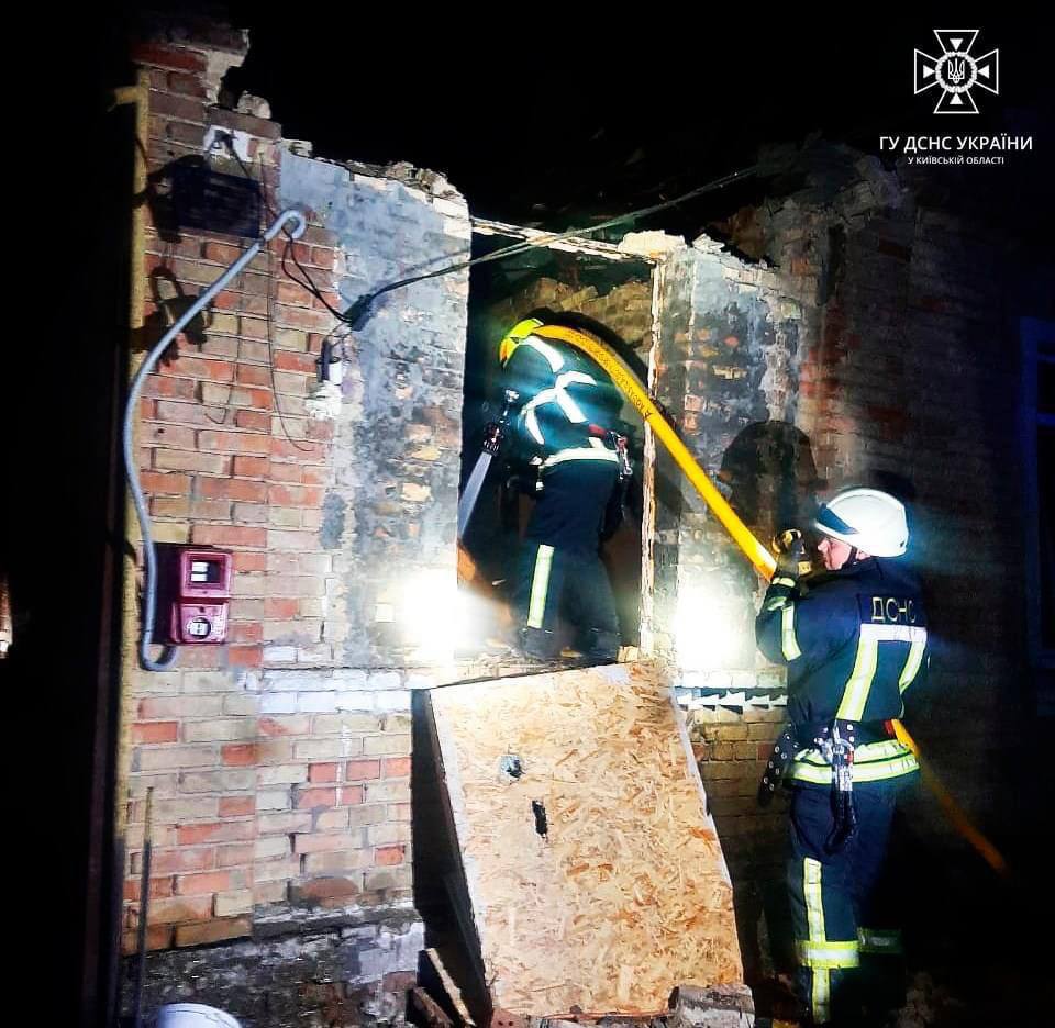 Під час нічної повітряної атаки на Київ та область дронами-камікадзе внаслідок падіння уламків збитих безпілотників у двох районах Київщини пошкоджені три приватні будинки, повідомив вранці голова Київської обласної військової адміністрації Руслан Кравченко.
