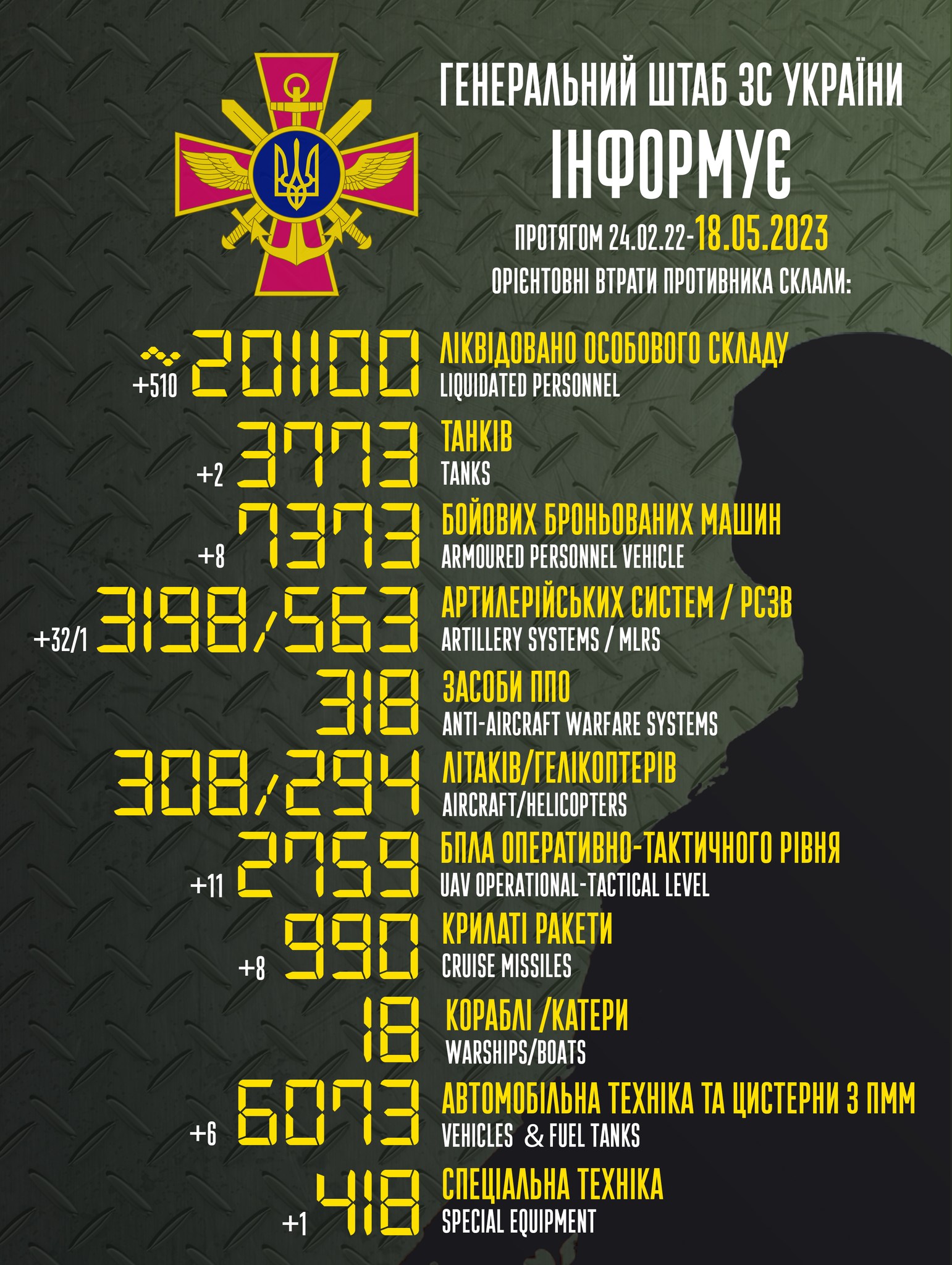 Загальні втрати ворога станом на 18 травня: