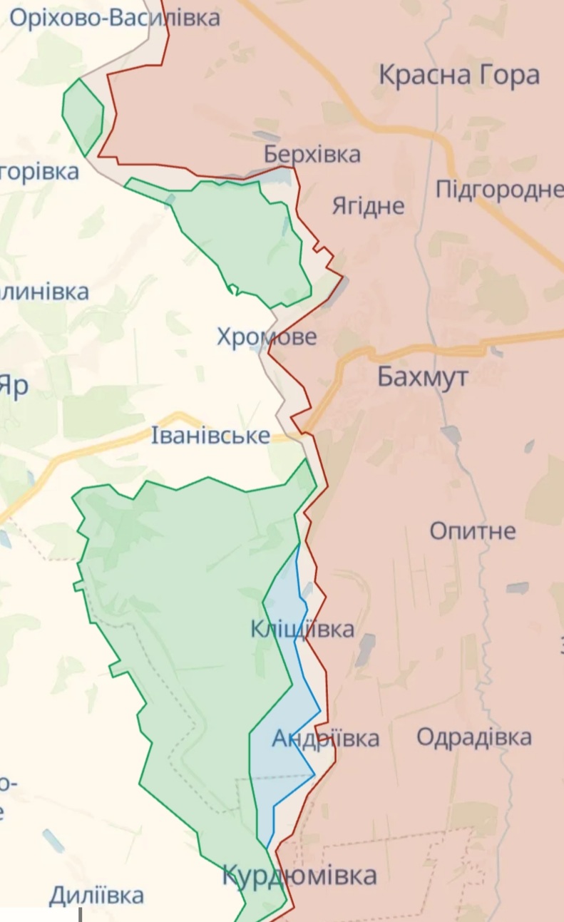 Начальник пресслужби Східного угруповання військ ЗСУ Ілля Євлаш зазначив, що українські військові продовжують наступальні дії на бахмутському напрямку, зокрема, на південному фланзі в районі Кліщіївки Донецької області, інформує "Суспільне".