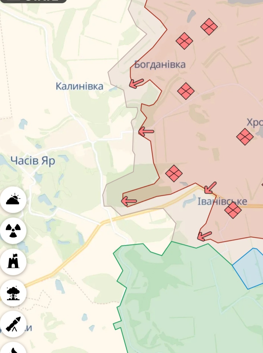 Російські окупаційні війська продовжують активно наступати на бахмутському напрямку та намагаються захопити околиці Богданівки та селища Іванівське, щоб далі просуватися до міста Часів Яр, яке воєнне командування РФ наказало захопити до 9 травня, заявив в ефірі телемарафону речник Оперативно-стратегічного угруповання військ "Хортиця" Назар Волошин.