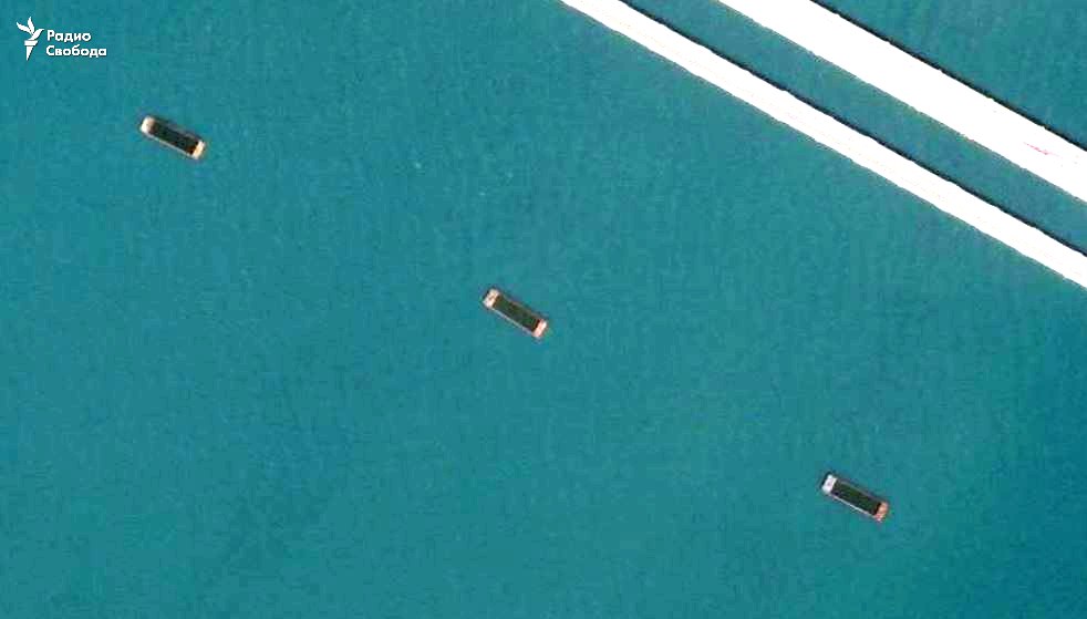 «Вони не "затоплені", а найімовірніше закріплені якорями на одному місці. Можливо, ці баржі будуть використані як основа для загородження проти українських морських дронів», - пишуть журналісти.
