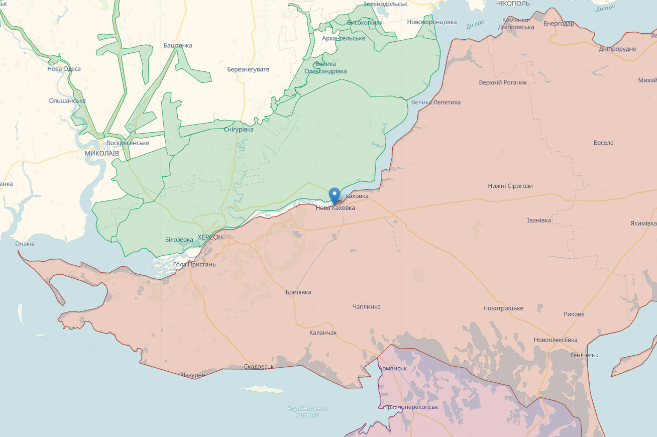 UPD: Генеральний Штаб Збройних Сил України спростував повідомлення, поширене ним раніше щодо нібито виходу військ РФ з міста Нова Каховка на Херсонщині. Ворожа армія досі тимчасово залишається в населеному пункті.