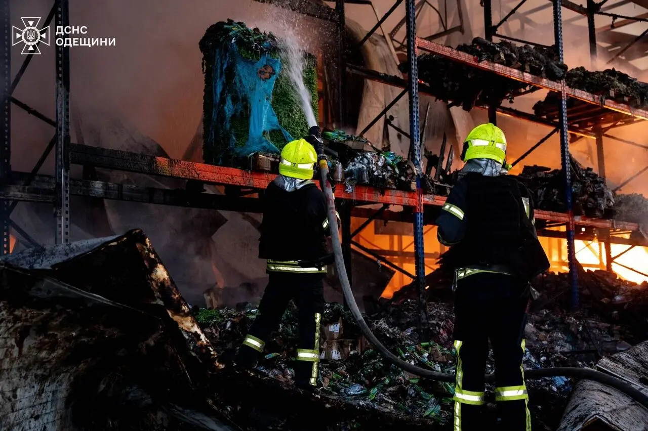У ДСНС додали, що за різними адресами в місті спалахнули пожежі. Найбільший вогонь розгорівся у складських приміщеннях з продуктами харчування.