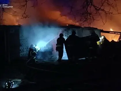 За інформацією Державної служби України з надзвичайних ситуацій, у місті Шостка після атаки ударних безпілотників спалахнула масштабна пожежа в 13 гаражах, які розташовувалися поруч один біля одного. Також загорілися автомобілі. Рятувальники загасили пожежу.