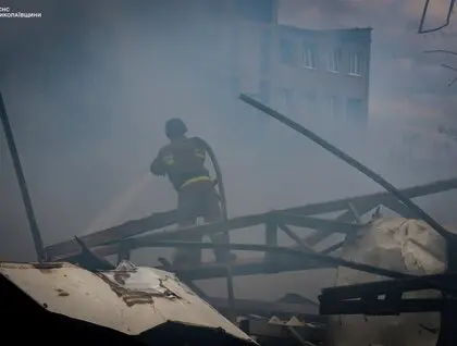 За інформацією ДСНС, після ракетного удару в одному з районів міста спалахнула пожежа на території СТО, зокрема загорілися припарковані поруч автомобілі та будівля. Рятувальники загасили пожежу.