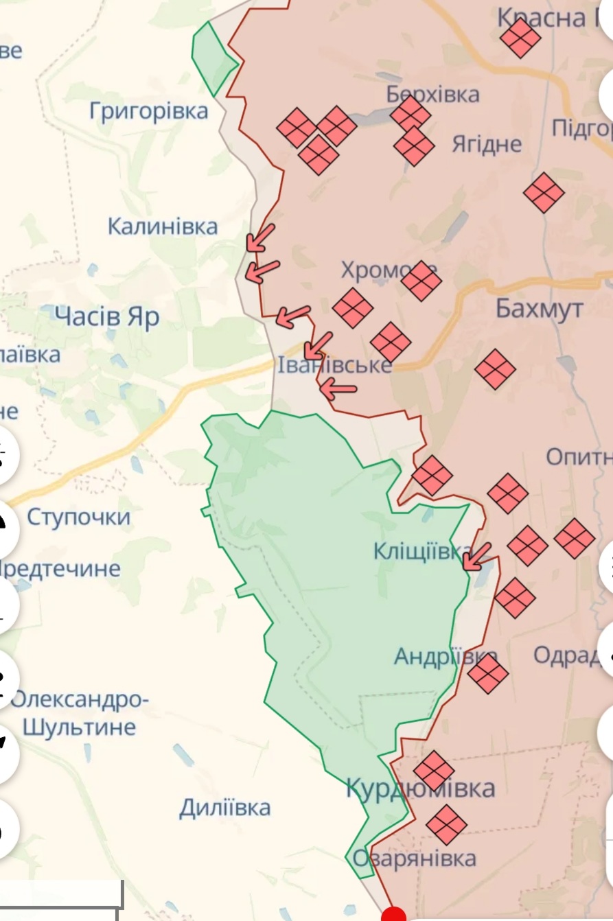 Співзасновник та аналітик DeepState Роман Погорілий зазначив, що за село Іванівське, що розташоване біля Часового Яру Донецької області, нині йдуть важкі бої. Українські військові стримують натиск окупаційних військ.