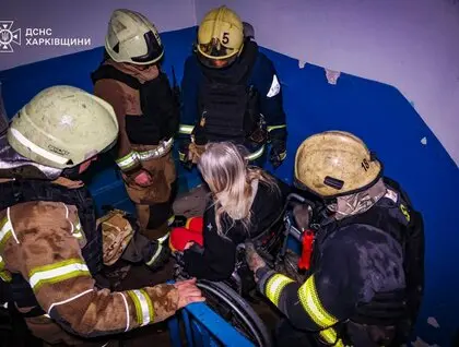 Працівники ДСНС врятували жінку з інвалідністю. На місці події працюють 35 рятувальників, психологи ДСНС, розгорнуто автобус швидкого реагування Харківської міської ради для надання допомоги мешканцям будинку.
