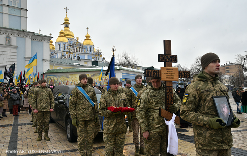 Церемонія прощання розпочалася у Михайлівському соборі, після чого похоронна процесія вирушила на Майдан Незалежності.