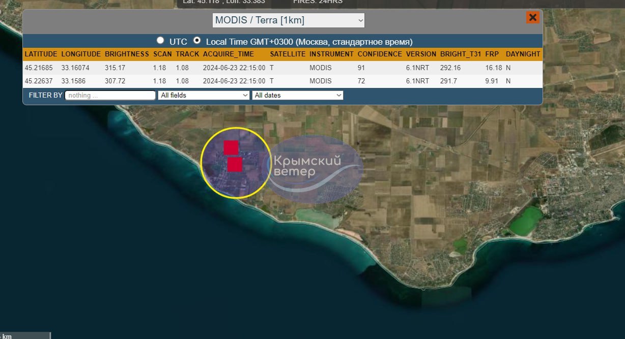"Супутники відмічають два осередки пожежі біля російського 40-го окремого командно-вимірювального комплексу (Центр дальнього космічного зв'язку, НІП-16, військова частина 81415)", — йдеться у повідомленні.