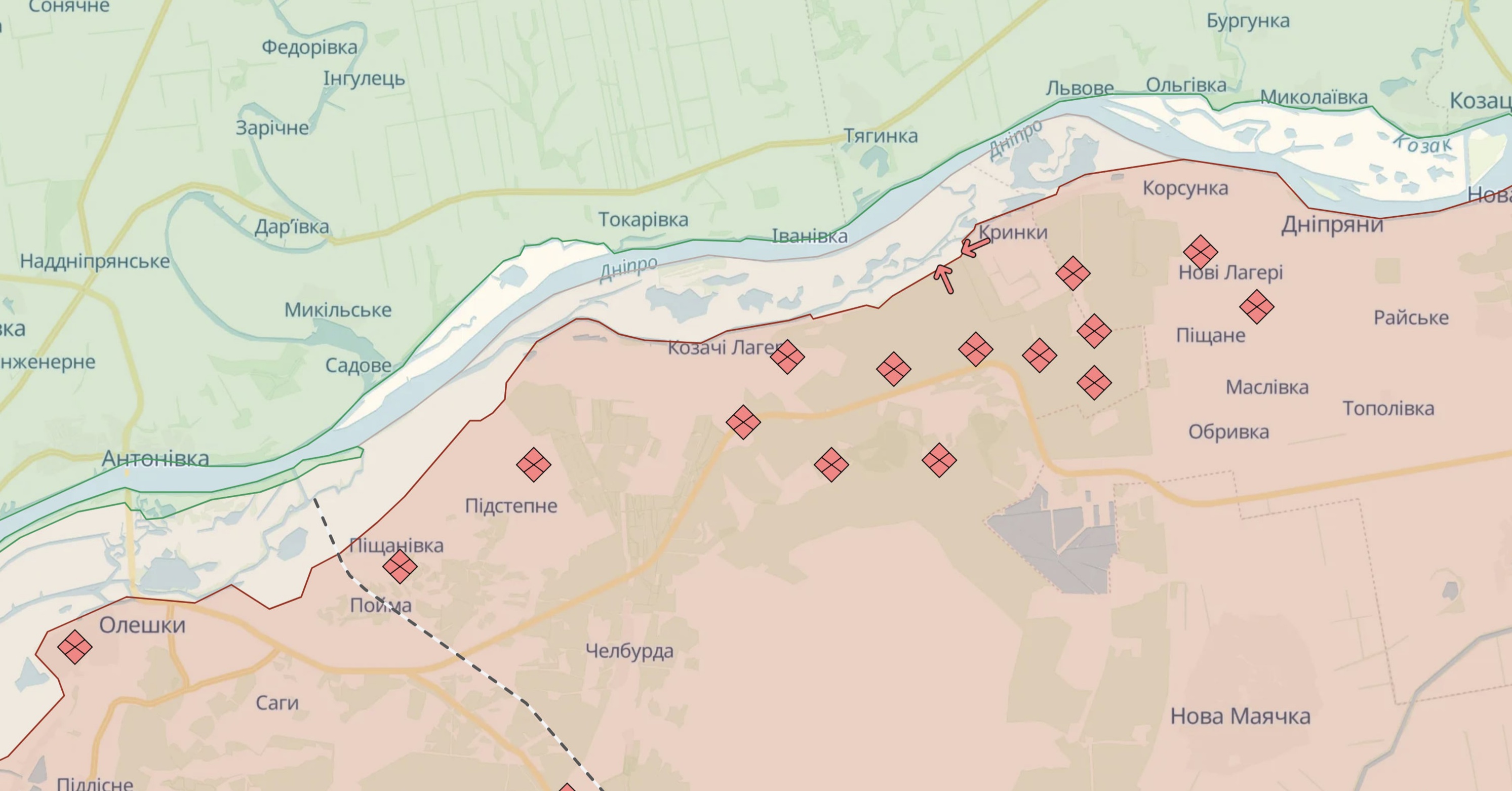 Російські окупаційні війська не полишають спроб витіснити українських військових із зайнятих позицій на тимчасово окупованому лівобережжі Дніпра в районі населеного пункту Кринки. Там за добу росіяни здійснили два безуспішних штурми, інформують Сили оборони півдня в Telegram.