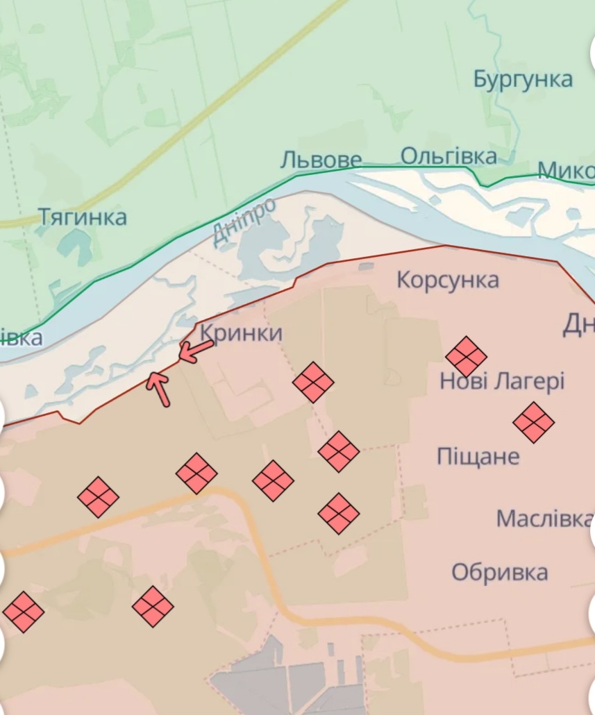 За добу армія РФ двічі намагалася штурмувати позиції ЗСУ на лівобережжі Дніпра та провела чотири штурми у районах Роботиного та північно-західніше Вербового Запорізької області.