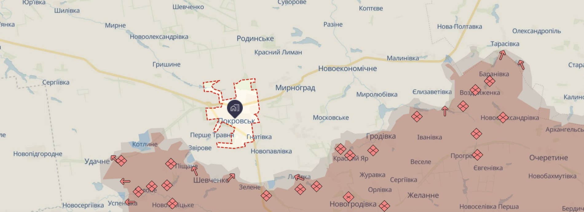 У DeepState повідомили, що війська РФ закріпилися у східній частині села Лисівка поблизу Покровська. Речник оперативно-стратегічного угруповання військ "Хортиця" Віктор Трегубов заявив, що загарбники намагаються обійти Покровськ із південно-західного напрямку.