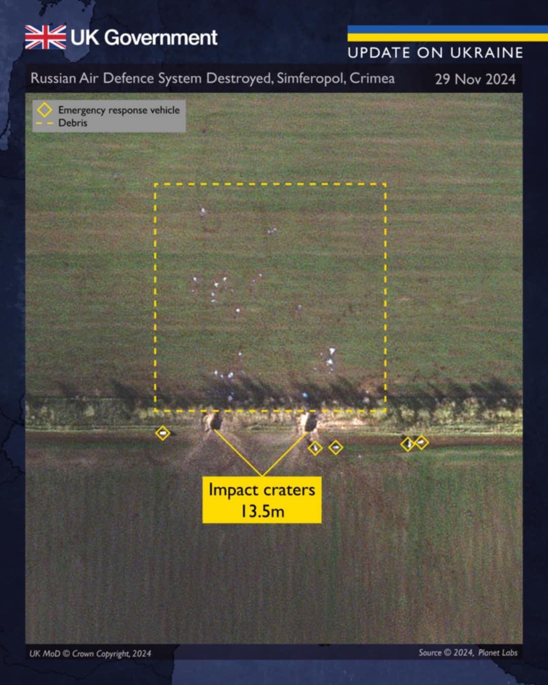 У Міноборони Сполученого Королівства наголосили, що це вже друга успішна атака українських військових на ЗРК за минулий місяць. У Курській області 23 листопада Сили оборони завдали ударів по позиціях зенітного ракетного дивізіону 1490 зенітного ракетного полку шостої армії РФ та уразили радіолокаційну станцію зенітно-ракетного комплексу С-400.