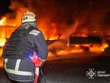 Знищено легкові, вантажні автомобілі та автобус. Виникли пожежі, які були ліквідовані рятувальниками. Інформація уточнюється.
