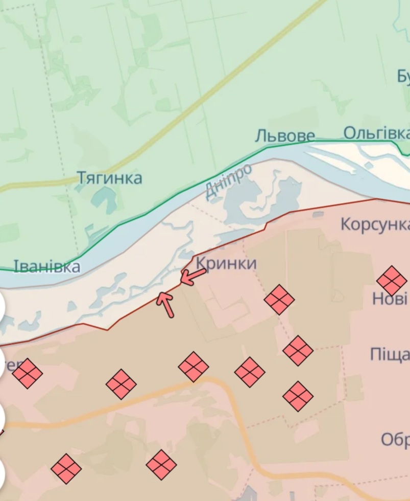 Раніше Гуменюк повідомляла, що росіяни намагаються вибити підрозділи Збройних Сил України з плацдарму в районі села Кринки Херсонської області, однак після наступальних дій із Кринок не повертається 60-70% штурмових груп армії РФ