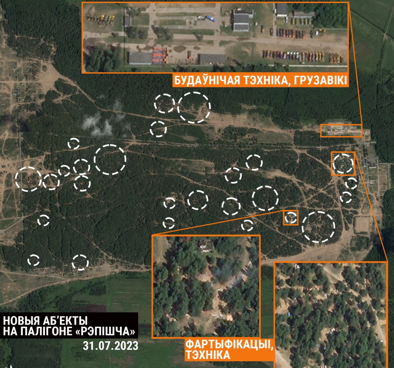 В Білорусі на полігоні «Репіща» під Осиповичами, де розташували найманців російської ПВК «Вагнер», ведуться активні будівельні роботи. Про це пише білоруська служба «Радіо свобода» із посиланням на дані супутникових знімків