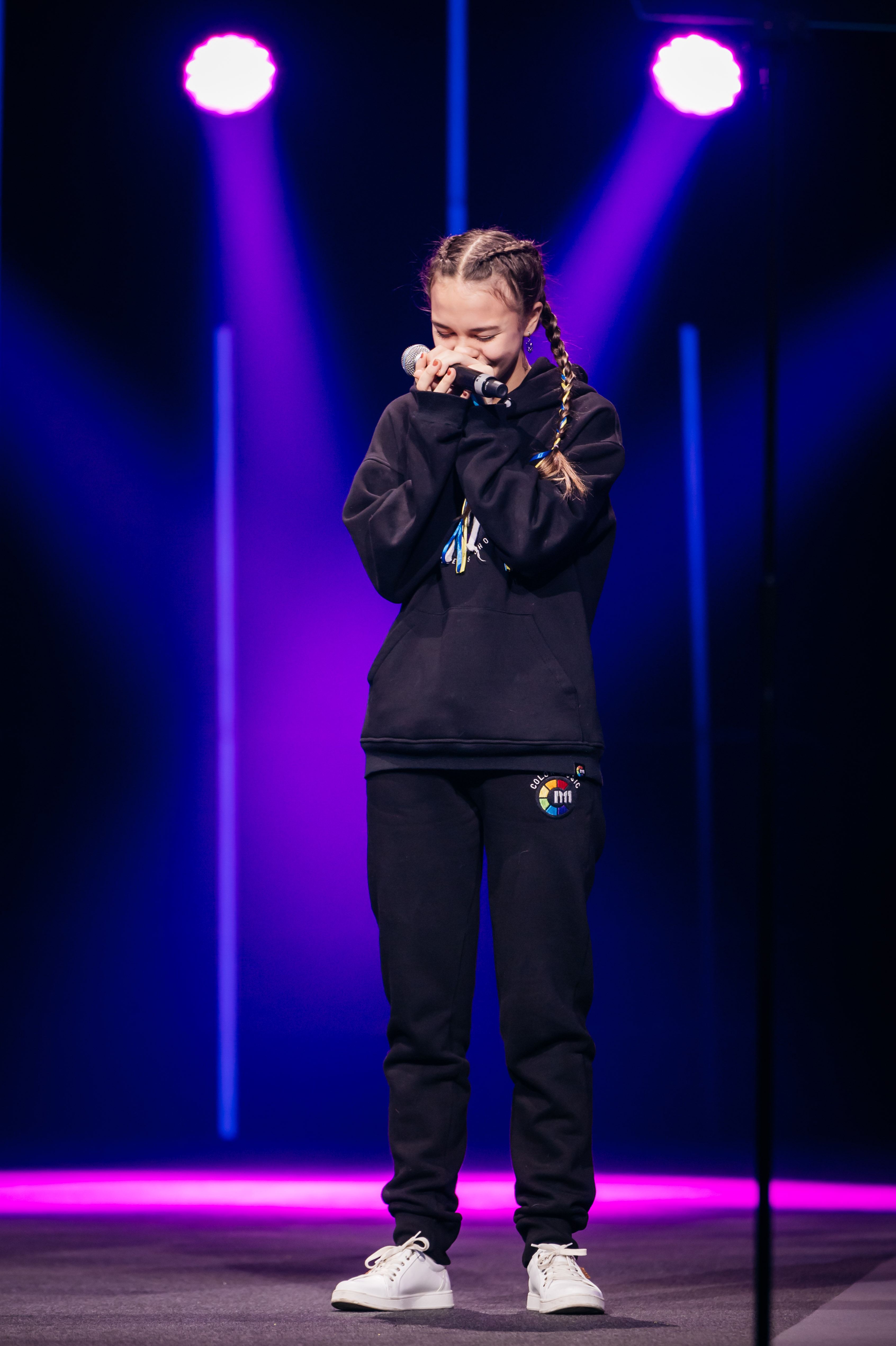 Після виступу, неочікувано для ведучих заходу, для глядачів, Віолетта звернулася з промовою до залу. Англійською дівчина розповіла, що у ці хвилини в її країні, у рідному місті розбирають завали будинку, в який влучила російська ракета. Розповіла про те, що під завалами знаходяться люди і вони благають про допомогу.