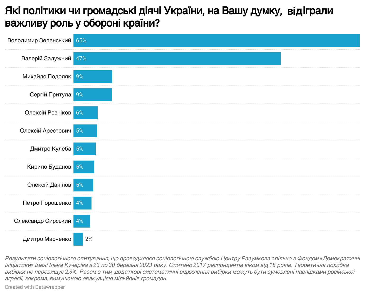 Війна, що стала битвою за національне виживання, створила великий кредит суспільної довіри до керівництва держави та Сил оборони. Саме Володимира Зеленського і Валерія Залужного люди наділяють правом позначати події як успішні та трагічні, відзначати інших людей як героїв чи негідників. Це право визнане більшістю громадян, які їм довіряють і високо оцінюють їхній внесок у боротьбу. Хоча це не входить до кола прямих обов’язків президента й головнокомандувача Збройних сил, однак їхні слова сформують так звану офіційну версію перебігу війни.