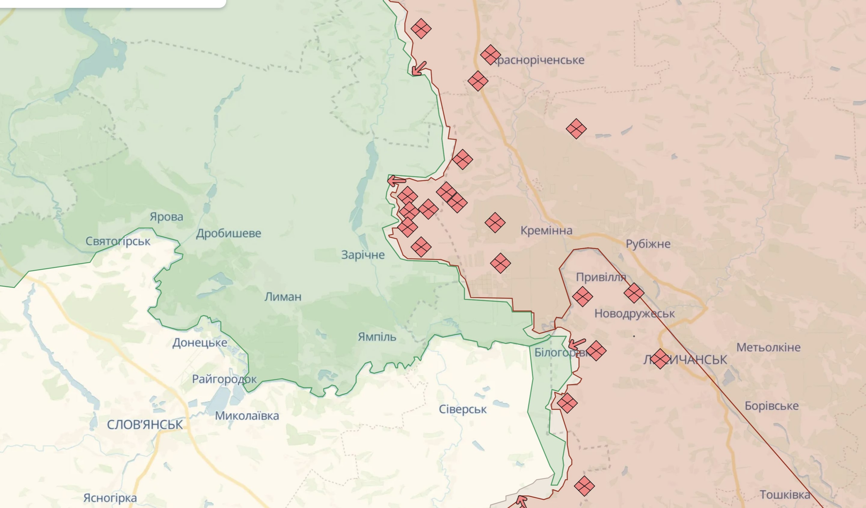 Російські окупаційні війська сьогодні по обіді активізувалися на лиманському напрямку. Українські захисники від початку доби вже відбили п’ять російських атак у районах Макіївки, Тернів, Іванівки та Торського, інформує Генеральний штаб ЗСУ в Telegram.