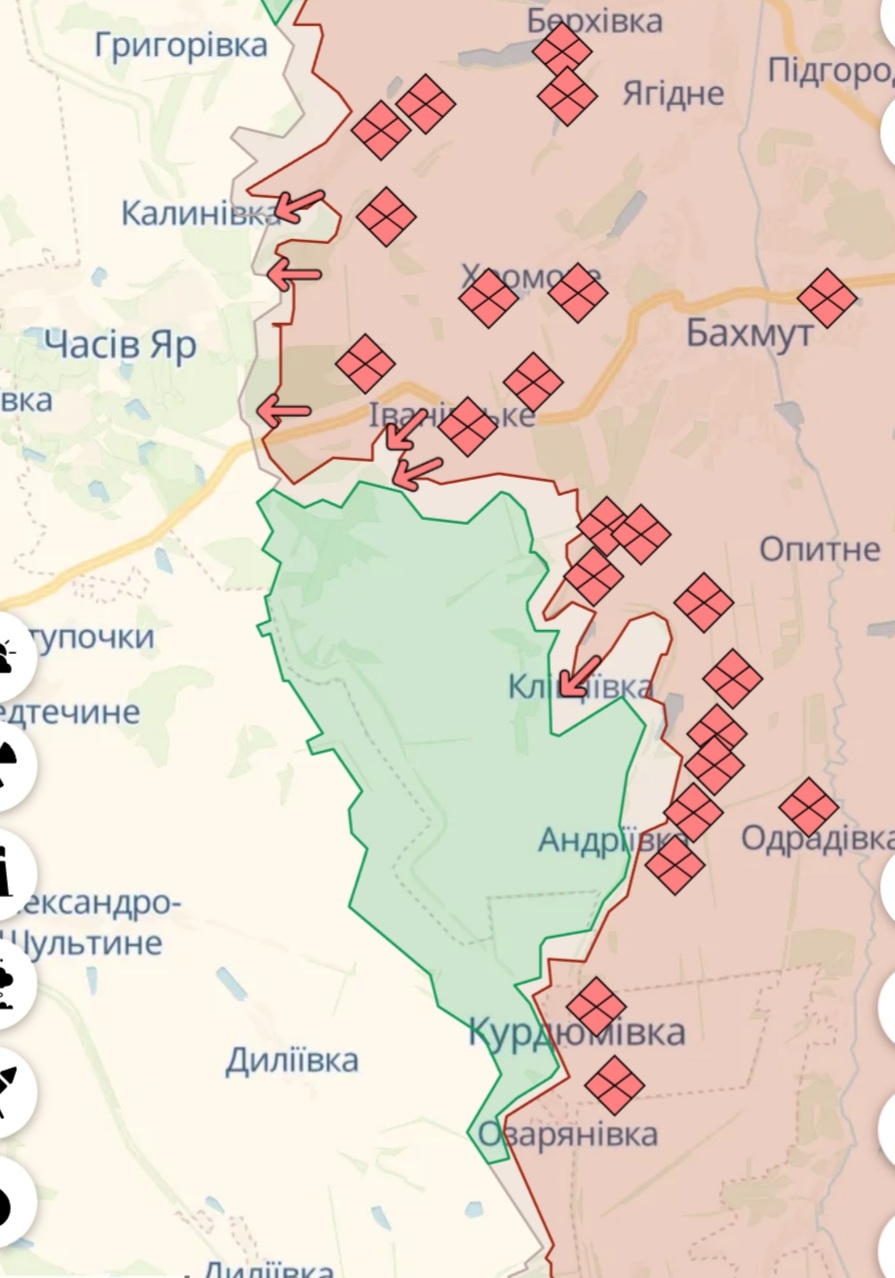 Раніше головнокомандувач ЗСУ Олександр Сирський повідомляв, що на підступах до міста Часів Яр та у районі Іванівського Донецької області тривають інтенсивні бойові дії.