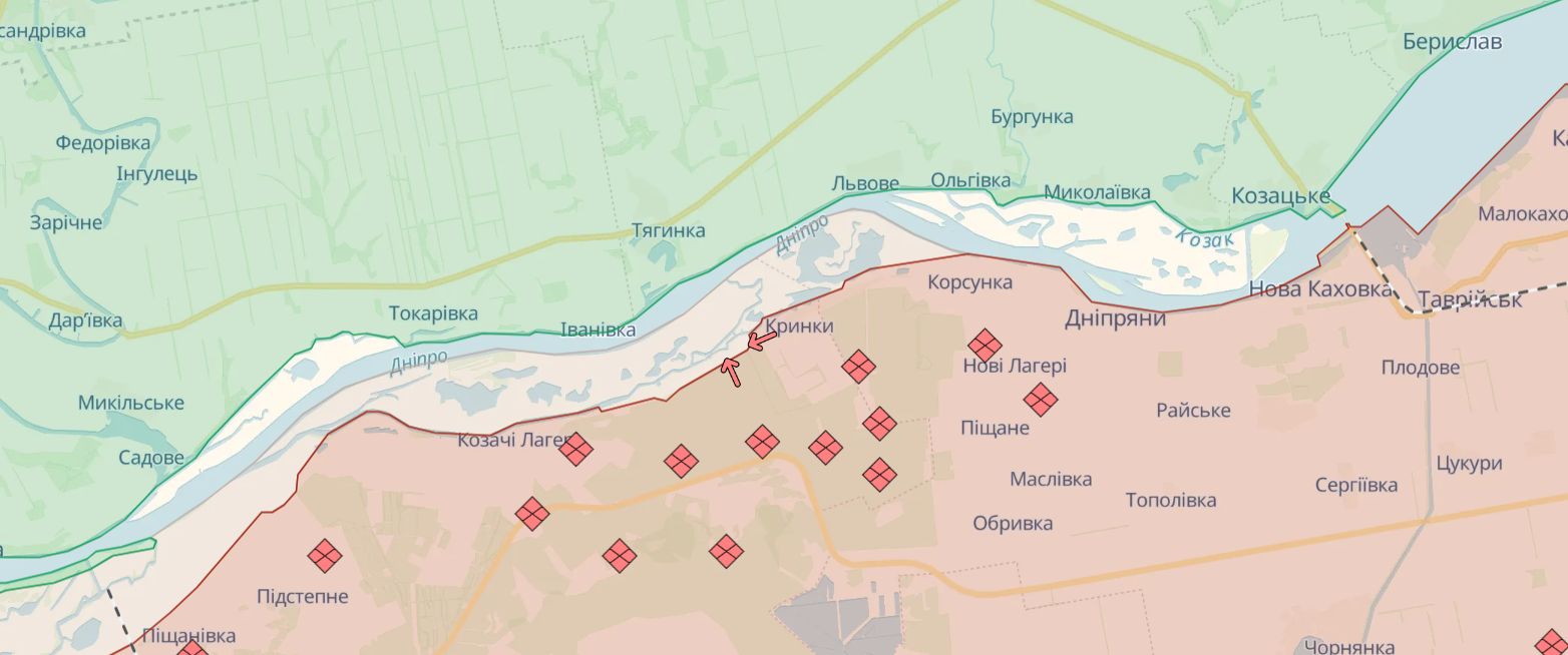 На придніпровському напрямку, поблизу Кринок ЗСУ відбили ще одну атаку росіян. З початку доби тут відбулося три боєзіткнення.