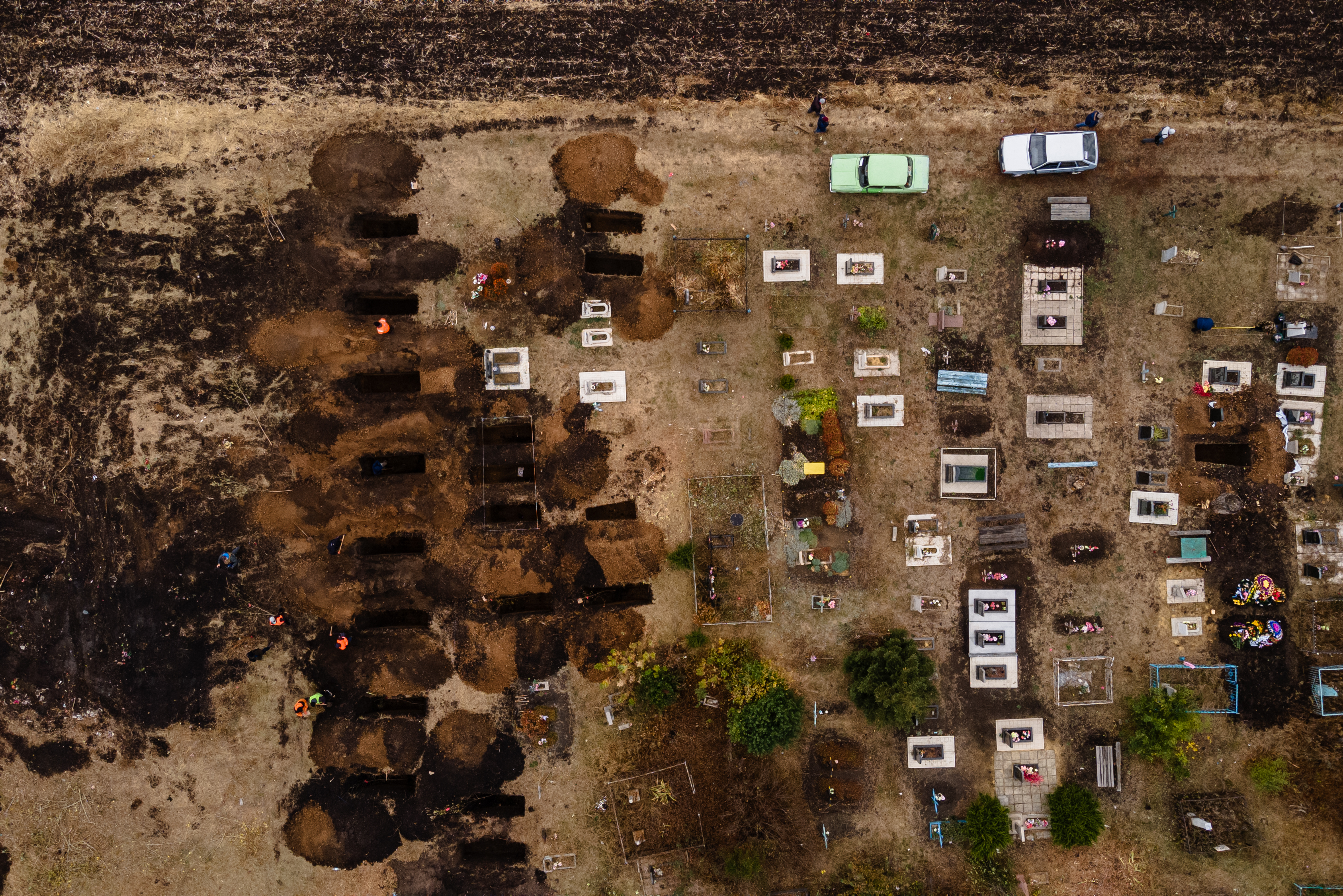 Могильники копають нові могили для жертв російського ракетного удару на кладовищі в Грозі, 09 жовтня 2023 року.