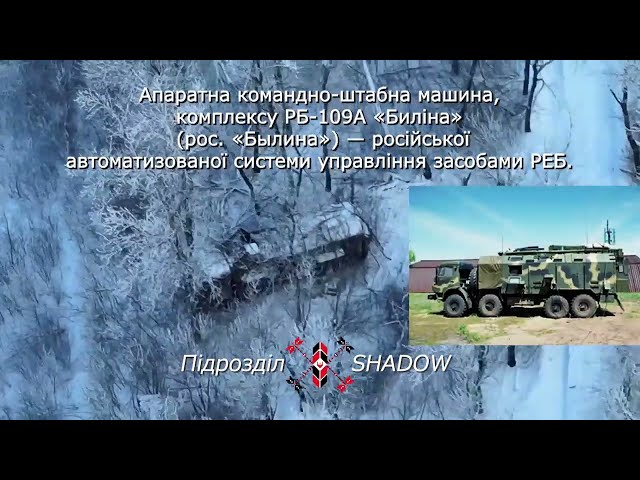 Українські оператори дронів підрозділу аеророзвідки Shadow виявили та скоригували вогонь по рідкісній машині новітнього російського комплексу радіоелектронної боротьби "Биліна" РБ-109А. Момент удару та подальше згоряння системи вдалося зафіксувати на відео, яке бійці опублікували на YouTube.