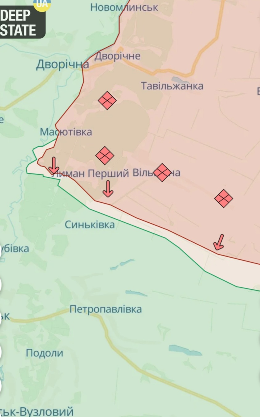 Заступниця міністра оборони України Ганна Маляр зазначила, що на куп’янському напрямку тривають бої. Українські захисники відбили атаки російських окупаційних сил у районі Синьківки Харківської області.