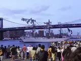 Бруклинский мост - популярная туристическая локация и основное "сообщение" между Манхэттеном и Бруклином, был открыт в 1883 году. Когда-то это был самый большой подвесной мост в мире. Представитель транспортного управления Нью-Йорка заявил, что в результате инцидента мост не получил значительных повреждений.