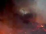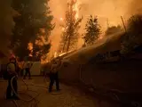 Пламя пылает неподалёку от озера Пиру в Национальном лесу Лос-Падрес, территория которого уже пострадала от пожара Хьюза в январе. Тогда огонь уничтожил около 39 кв. км земли за шесть часов и заставил более 50 тысяч человек быть готовыми к эвакуации.