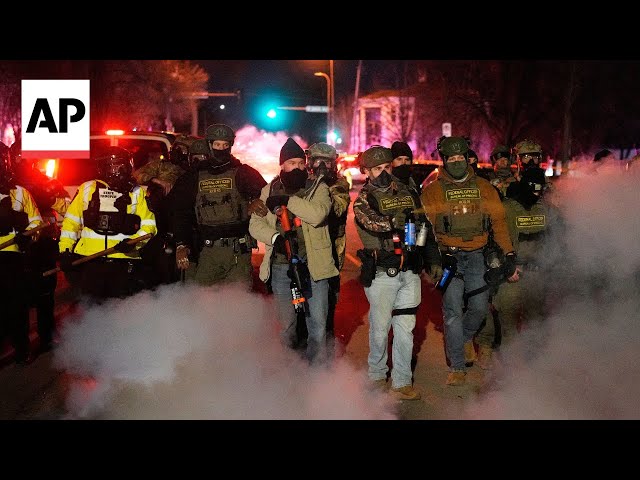 Несколько хорошо вооруженных агентов пограничной службы прибыли на большом военном автомобиле и остановились за пределами места происшествия, огороженного лентой. Протестующие окружили автомобиль, кричали и бросали снегом в агентов, которые вышли из авто. Через несколько минут приехали по меньшей мере два агента ICE на внедорожнике без опознавательных знаков и "распылили химические вещества в лица протестующих", которые приблизились к ним. В один момент протестующий бросил фейерверки в сторону автомобилей агентов ICE, которые отъезжали.