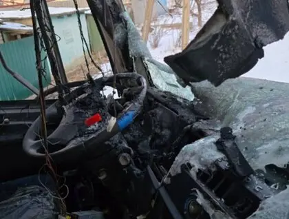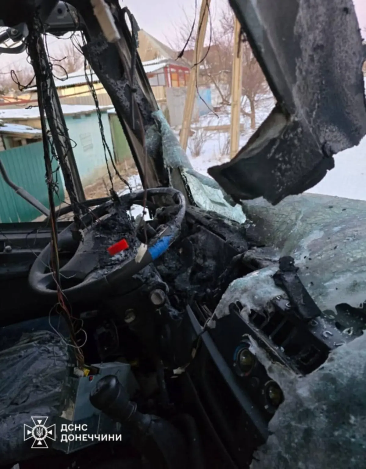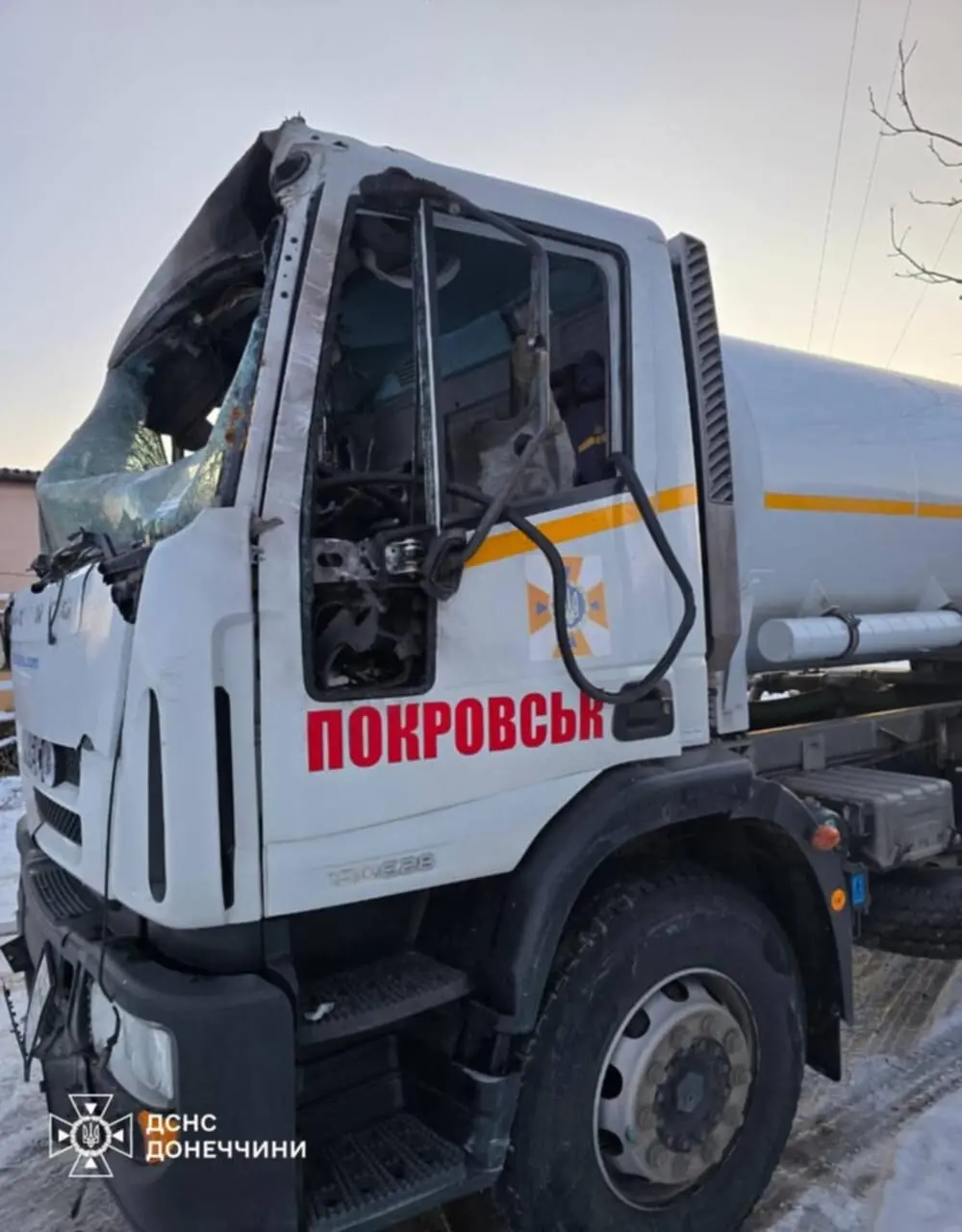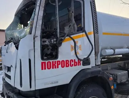 Один из дронов попал в автомобиль Государственной службы Украины по чрезвычайным ситуациям. Спасатели везли жителям воду. Машина значительно повреждена.