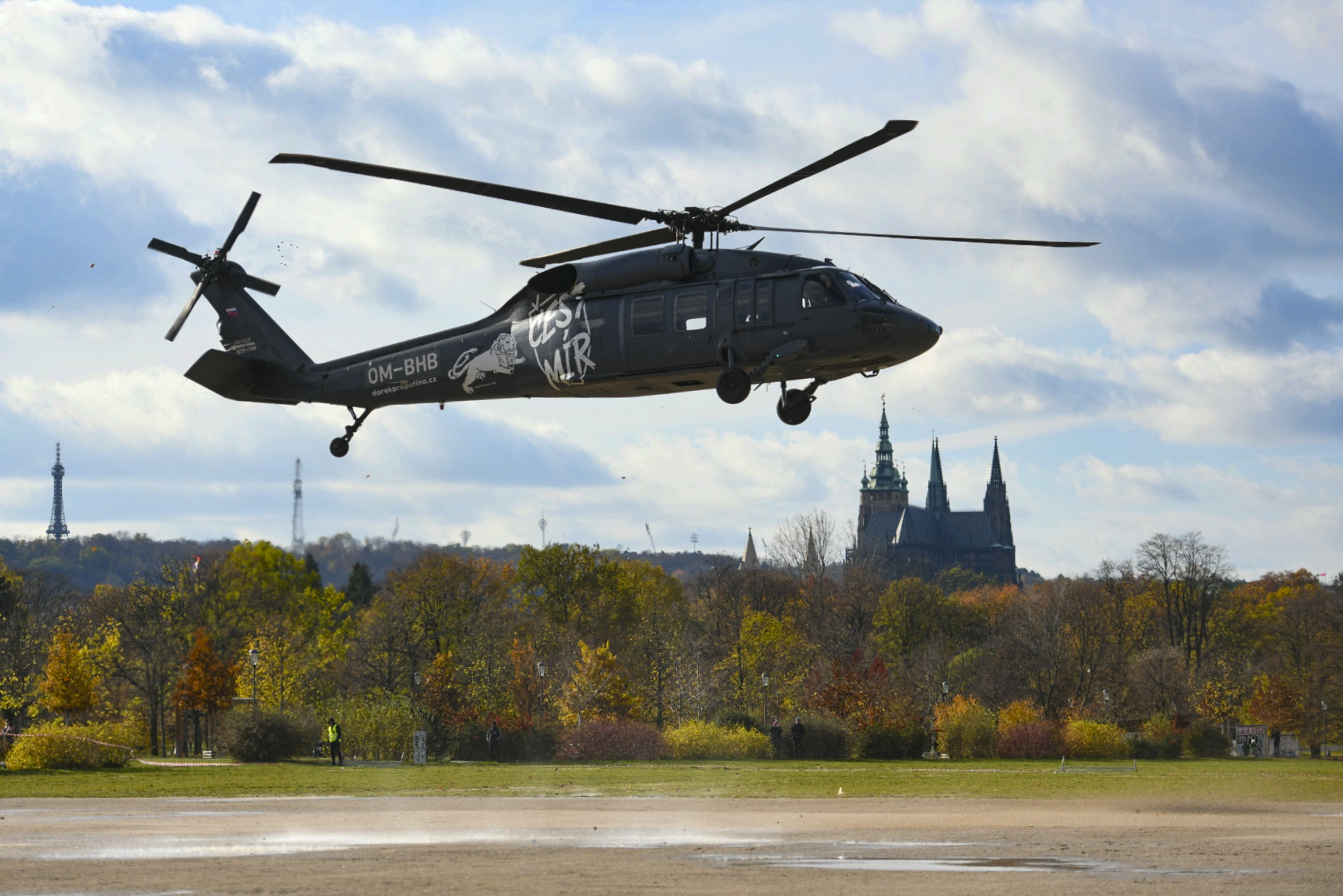 В пятницу все желающие могли посмотреть на вертолет, приземлившийся в Праге. Вертолет оснащен четырехлопастными винтами, главным и хвостовым, приводимыми в движение двумя турбовинтовыми двигателями General Electric T700. UH-60 имеет широкий спектр применения, включая транспортировку войск, радиоэлектронную борьбу и аэромедицинскую эвакуацию. С внутренней полезной нагрузкой 1200 кг или наружной полезной нагрузкой 4100 кг он может перевозить 11 солдат со снаряжением или гаубицу с экипажем. Авионика включает в себя навигационную систему GPS и может быть оснащена системой крыла ESSS для перевозки топливных баков и вооружения, в частности ракет.