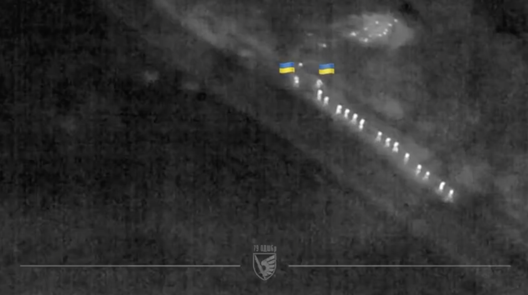 Пресс-служба также опубликовала уникальные кадры этой операции, которые сняли ночные дроны. На них видно, что защитники практически строем выводили россиян из их укрытия в плен.