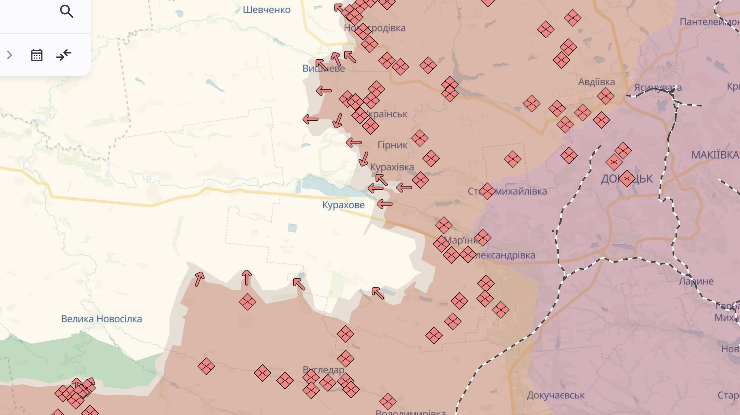 Информационный ресурс DeepState сообщил, что в Донецкой области, на южном фланге от Курахово, к западу от оккупированного Угледара, войска РФ продвинулись возле Максимовки, Ясной Поляны, Богоявленки.