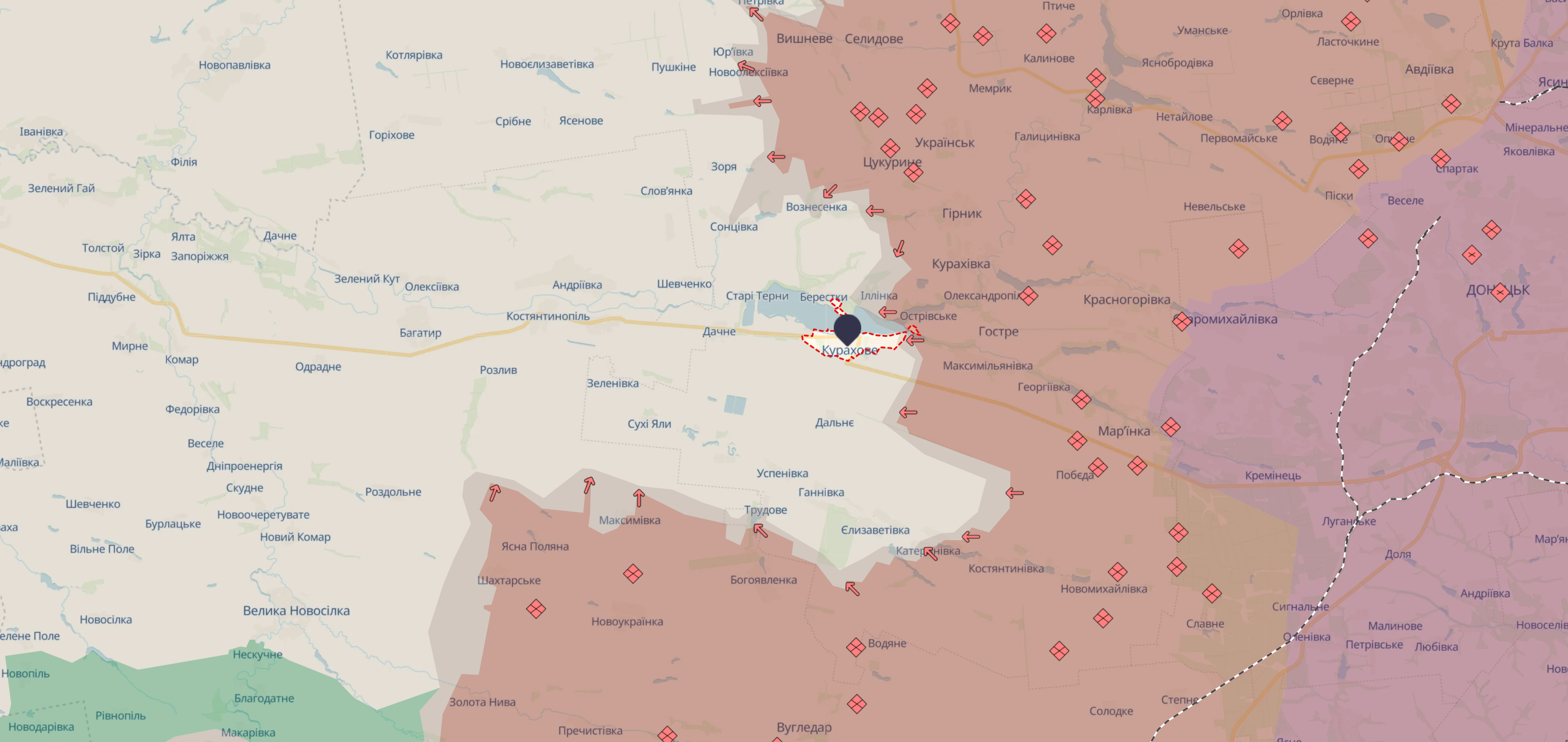 "Противник пытается занять господствующие высоты, взять под огневой контроль пути, ведущие к Курахово, прорвать оборону и добраться до окраин города, — рассказал пресс-офицер Александр журналистам УП. — Интенсивно обстреливает город, используя КАБы и артиллерию".