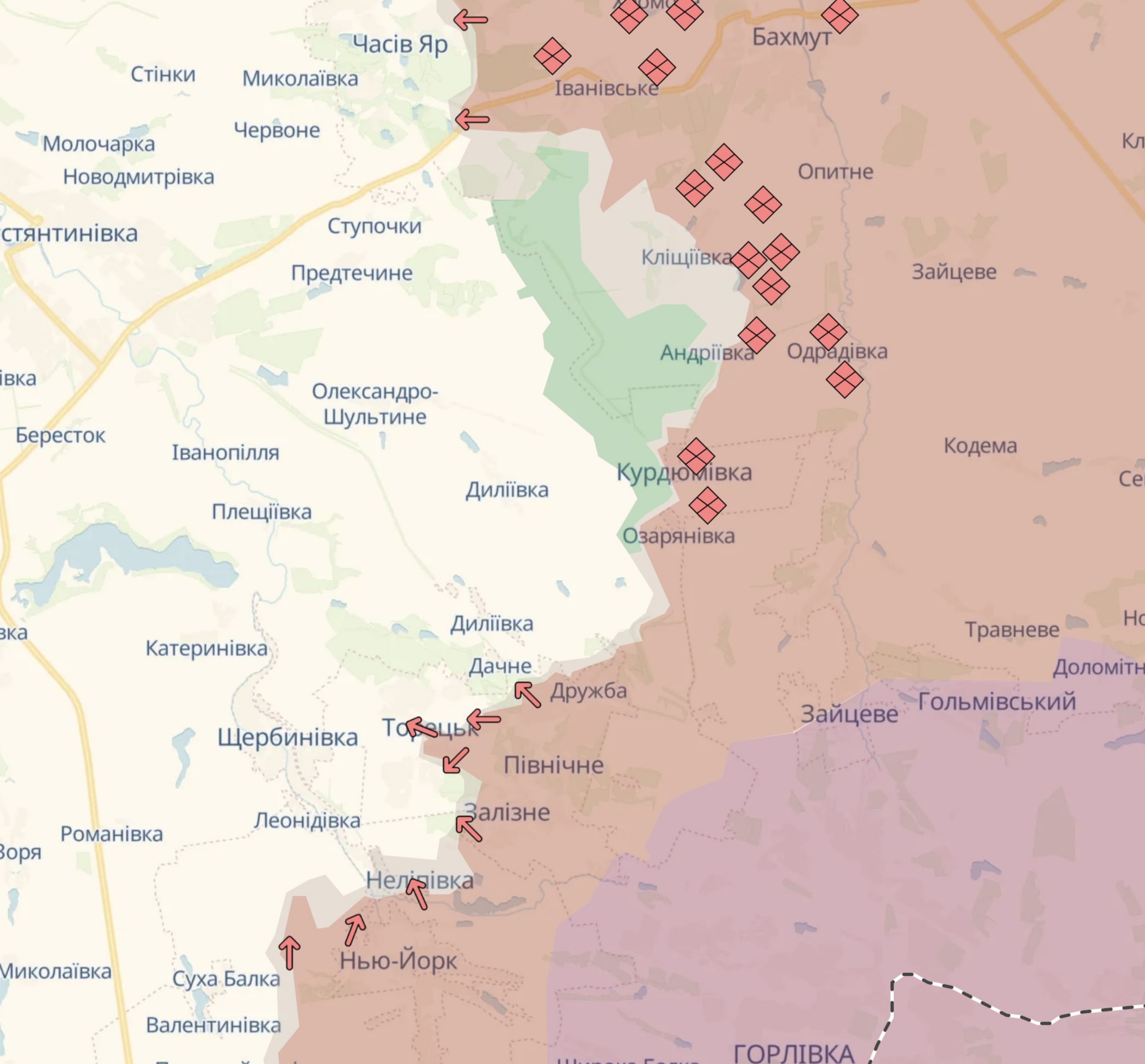 По ее словам, россияне массированно обстреливают Торецк из артиллерии, авиации, атакуют дронами.