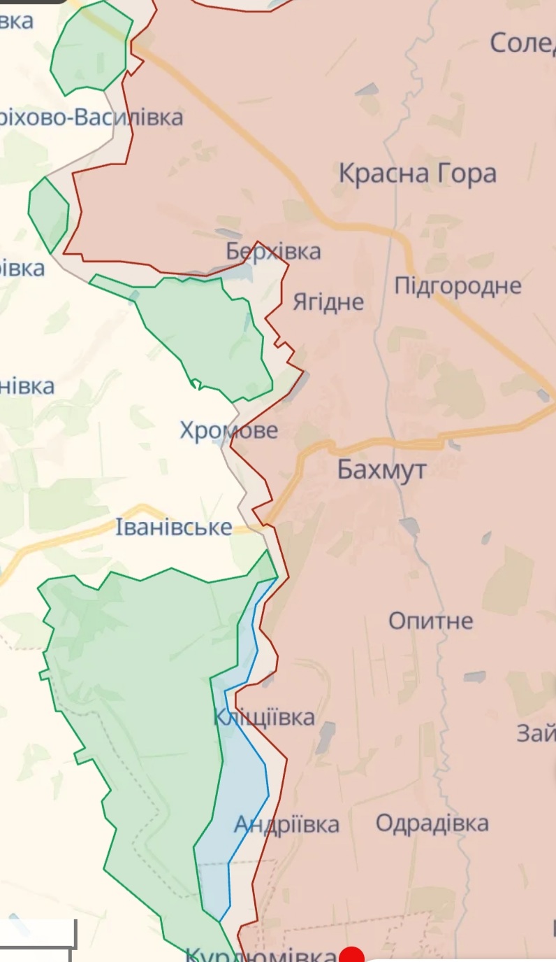 Спикер Генерального штаба ВСУ Андрей Ковалев заявил, что Вооруженные Силы Украины ведут наступательные действия южнее Бахмута Донецкой области и продвигаются в направлении Урожайного.