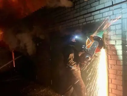 Как отметили в спасательной службе, из-за попадания вражеского боеприпаса загорелся гаражный кооператив.