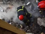 Чрезвычайники проводят разбор конструкций разрушенной девятиэтажки.