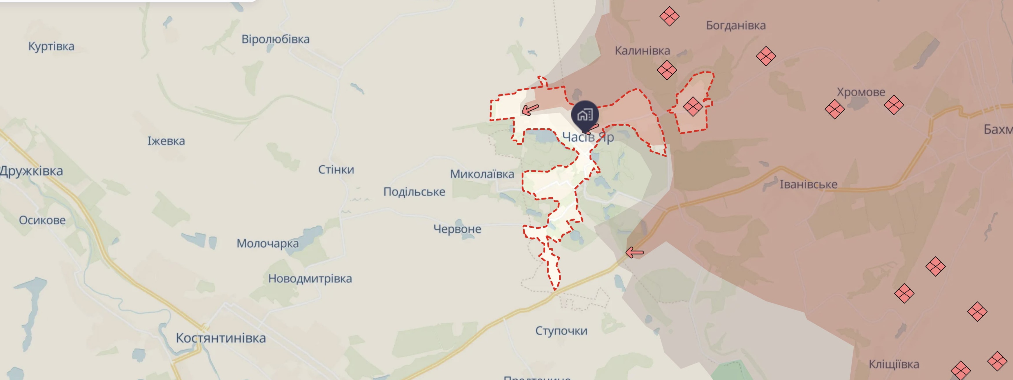 Украинский информационный ресурс DeepState сообщил, что в Часовом Яру войска РФ полностью заняли огнеупорный комбинат, за который длительное время велись бои.