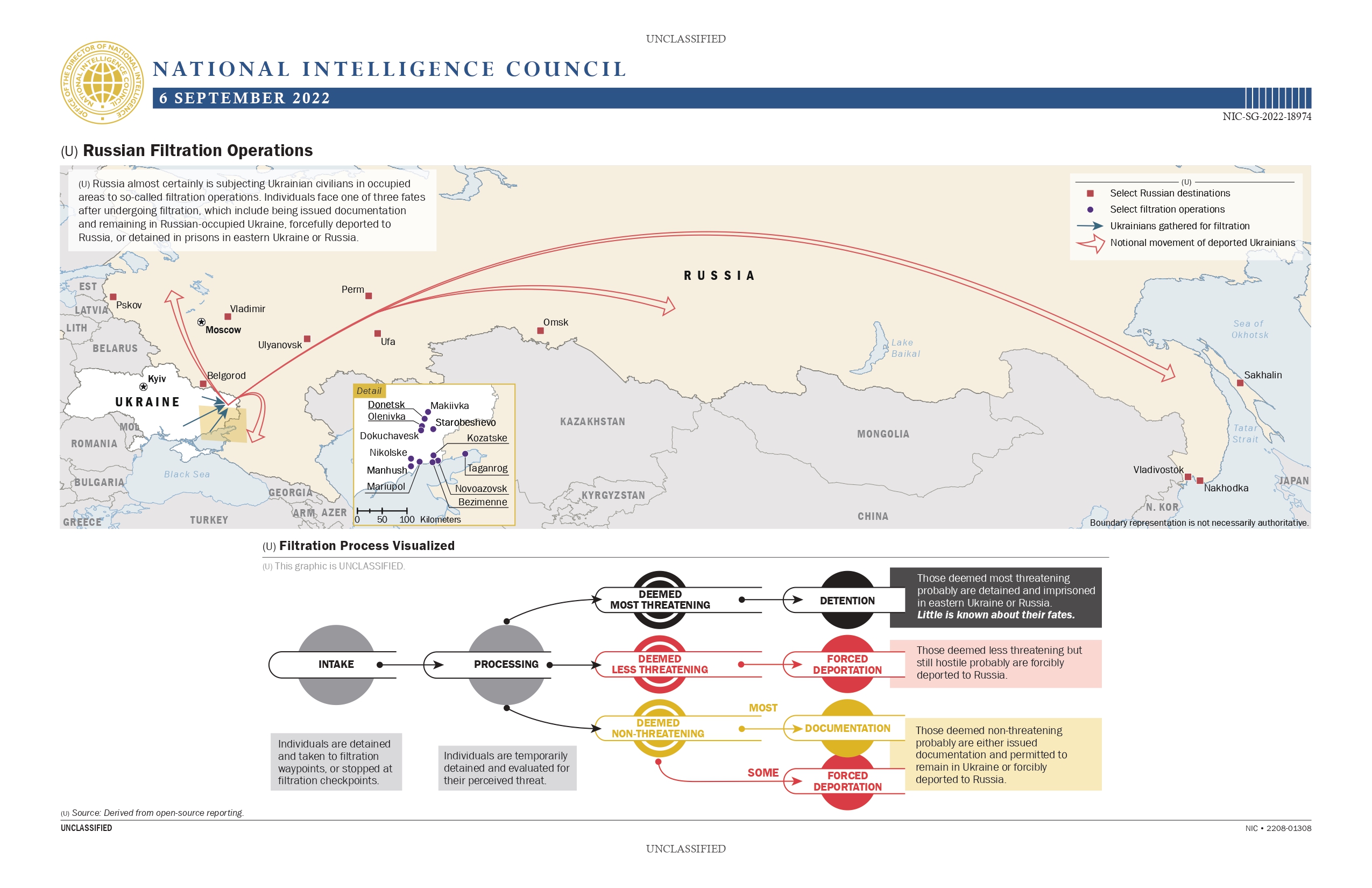 В начале полномасштабного вторжения фильтрационные меры прошли, по разным данным, от 900 тысяч до 1,6 миллиона украинских граждан. Около 20 тысяч украинских детей депортировали в РФ. География депортации — вся территория РФ со значительной долей депрессивных регионов.
