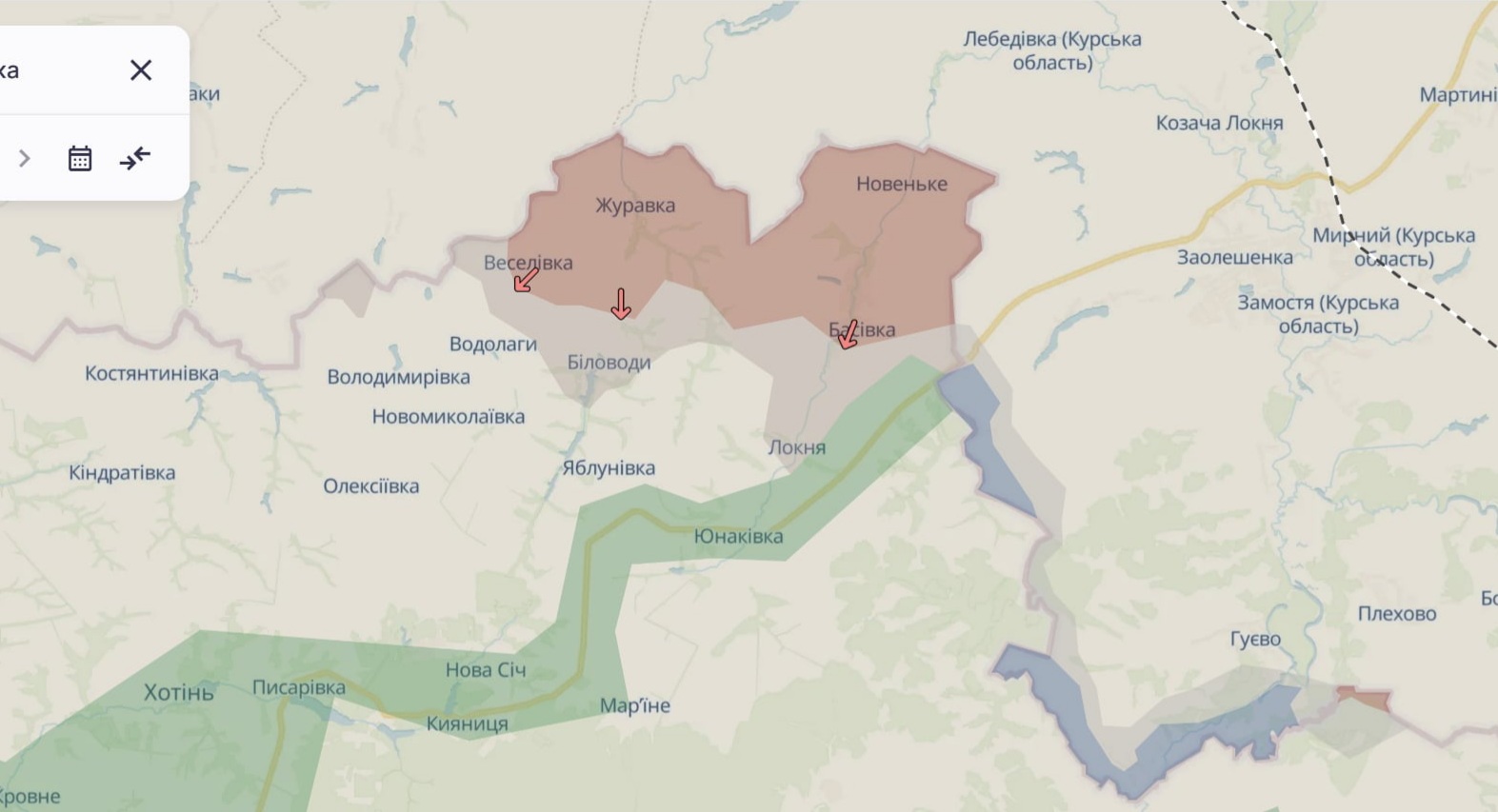 На сумском направлении войска РФ захватили Басовку, Веселое, Журавку и Новенькое. Секретарь Комитета Верховной Рады по вопросам национальной безопасности, обороны и разведки Роман Костенко предположил, что концентрация российских войск в направлении Сумской области может свидетельствовать о попытке локального прорыва.