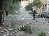 Также сообщается о повреждении нескольких домов, среди которых и жилые, выбитые стекла, разрушенные элементы фасадов и десятки изуродованных автомобилей. Один из ударов также повредил здание детского сада.