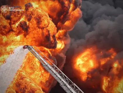 Российский дрон-камикадзе утром в среду, 8 октября, попал в нефтебазу в городе Прилуки Черниговской области. На территории этого объекта вспыхнул масштабный пожар, информирует Государственная служба Украины по чрезвычайным ситуациям на своей странице в Facebook.