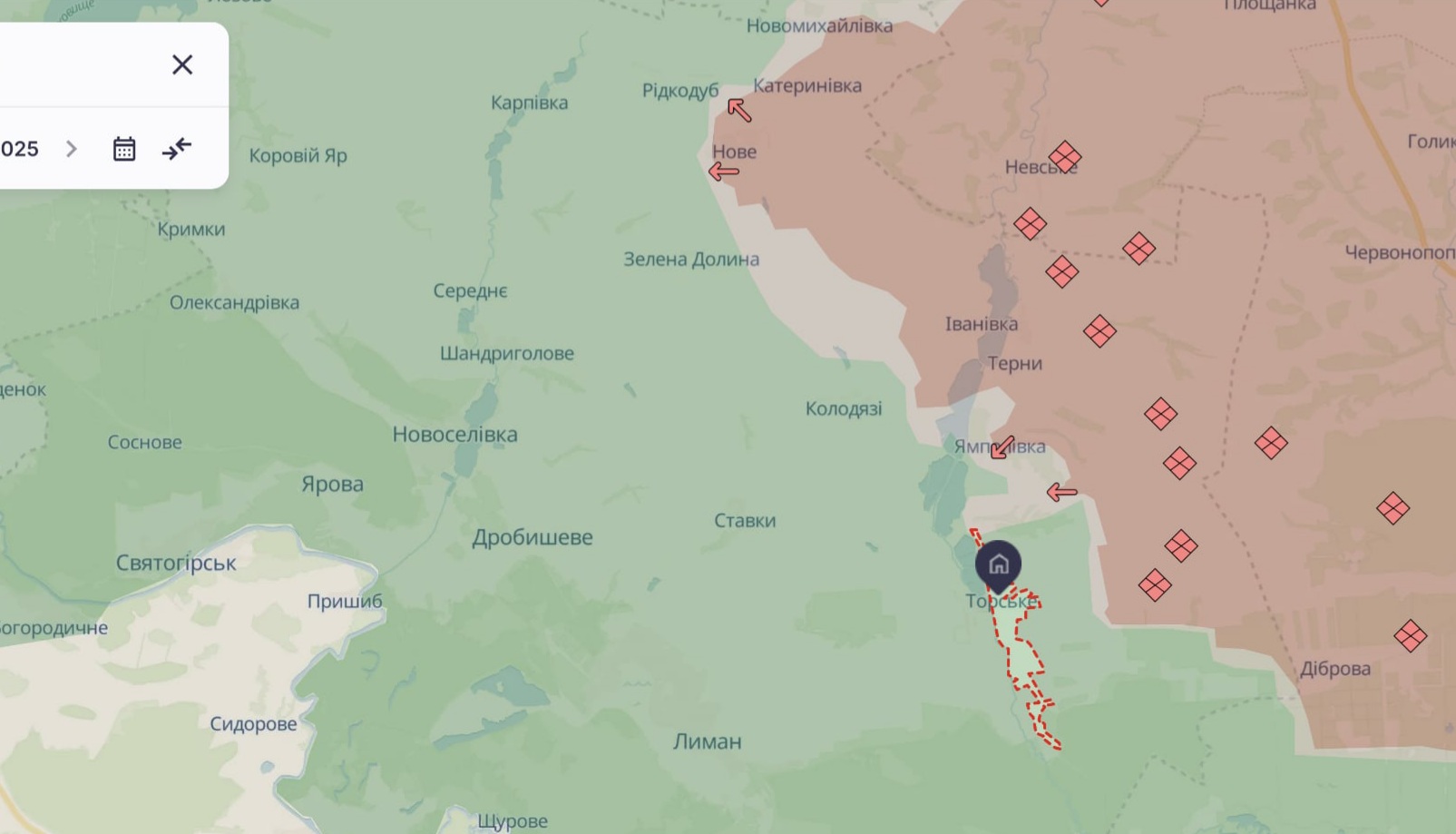 Военный объяснил, что войска РФ пытаются продвинуться к этому городу, наступая с флангов. Они давят на позиции украинских военных в районах Нового и Торского.