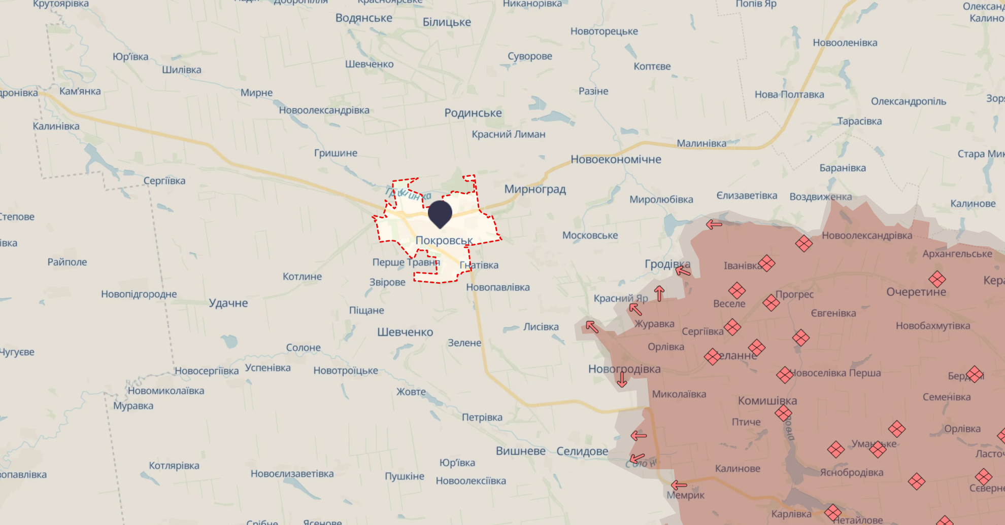 За прошедшие сутки российские оккупанты снова продвинулись на покровском направлении в Донецкой области. В сообщении аналитического портала DeepState сказано, что они имеют территориальные успехи в районе города Украинск Селидовской городской громады, который находится в 30 километрах от самого Покровска.