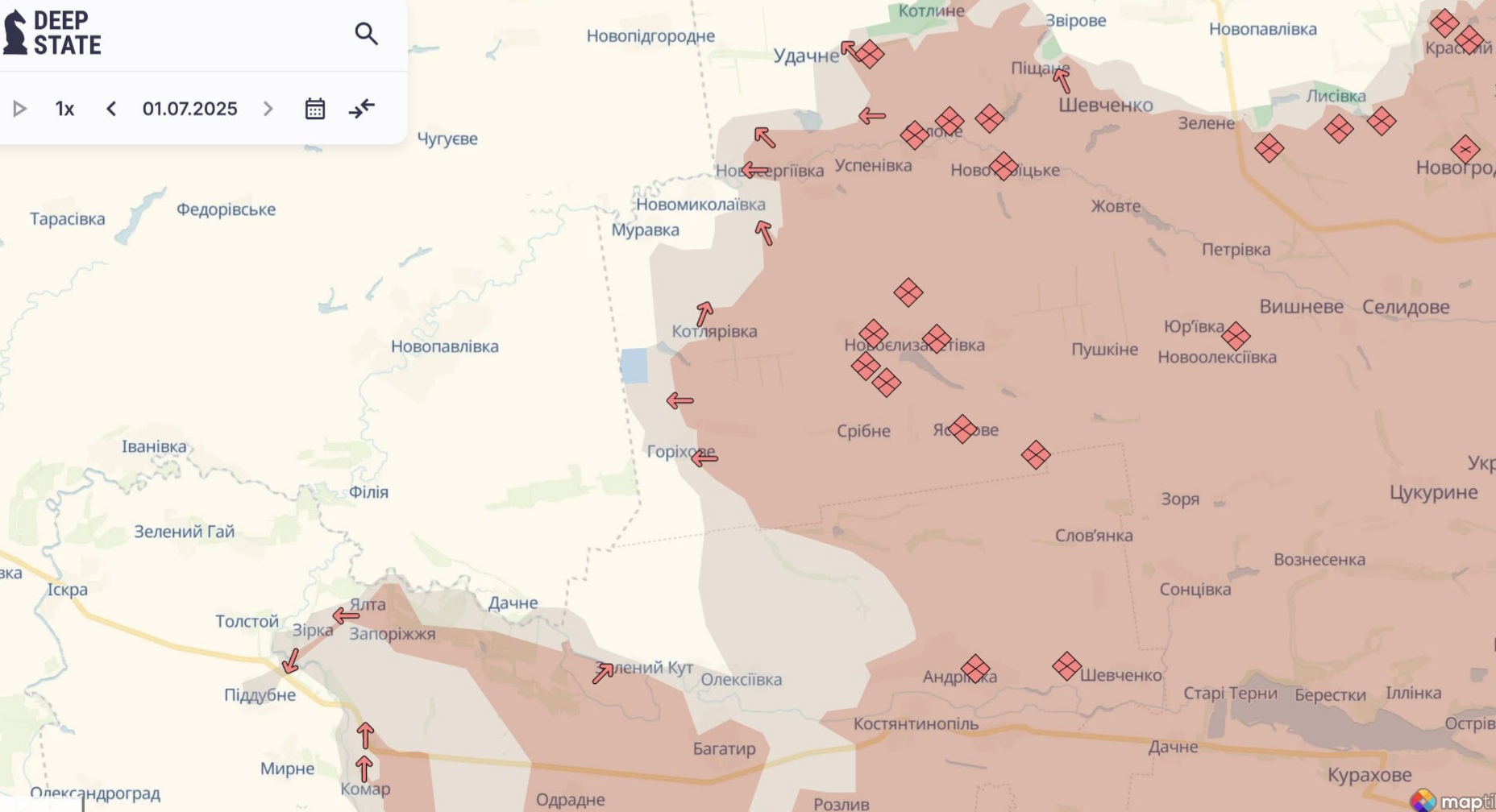 Войска РФ усилили штурмы на покровском направлении и давят на позиции украинских военных на ореховском направлении. Аналитики информационного ресурса DeepState рассказали об успехах россиян на этих двух участках фронта.
